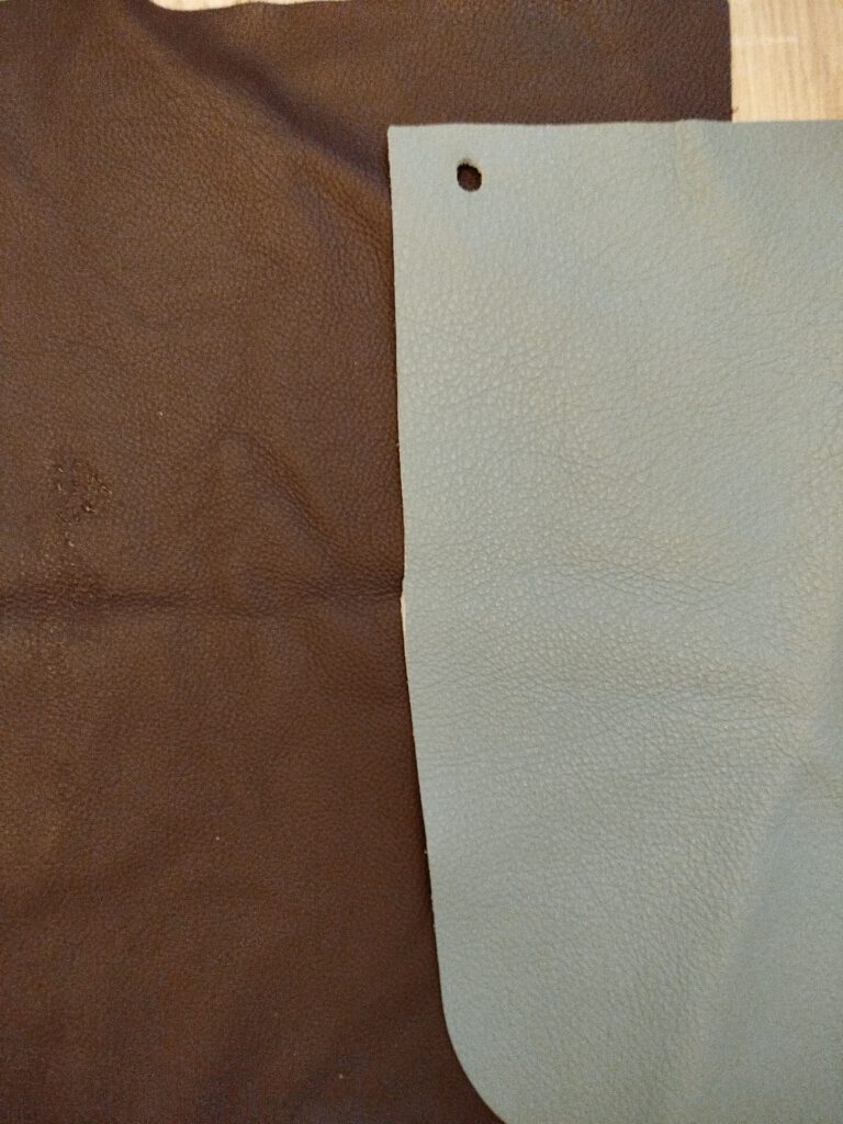 Dieses Leder hatte oft viele Naturmerkmale (wie Insektenstiche), weshalb die Oberfläche leicht angeraut und ein künstliches Narbenbild aufgeprägt wurde. Danach folgt eine stärkere Farbschicht.